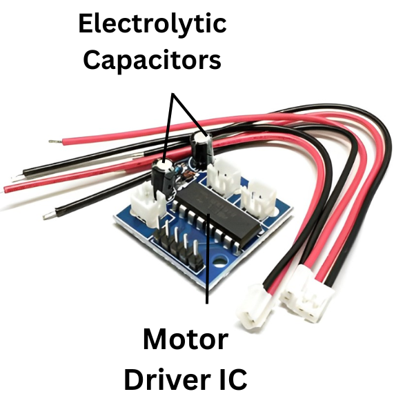 Dual H-Bridge Configuration: Enables independent control of two DC motors, facilitating forward and reverse movements.