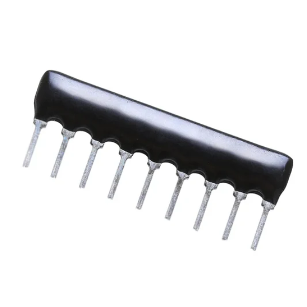 This resistor network offers a convenient and space-saving solution for your electronic projects. It combines eight 10k ohm resistors into a single package, along with a common ground.