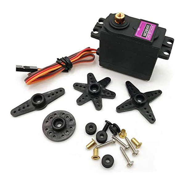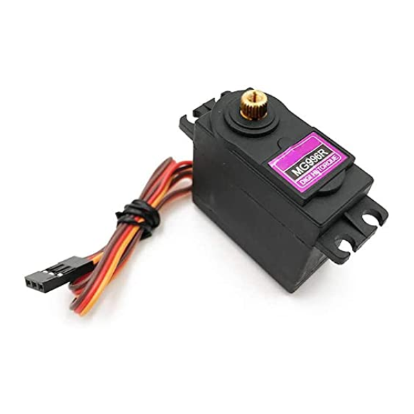 The MG996R is a high-torque servo motor known for its durability and precision. It features all-metal gears, providing enhanced strength and longevity compared to plastic gear servos. This servo is widely used in various robotics and RC applications where robust performance and reliable operation are crucial.