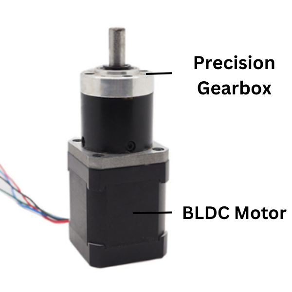 An NEMA17 Planetary Geared BLDC Motor with a 50KGCM torque, 50W power output, and a 1:14 reduction ratio is a compact and powerful electric motor designed for various applications requiring high torque and precise control. It utilizes a brushless direct current (BLDC) motor combined with a planetary gear system to achieve a significant torque amplification.