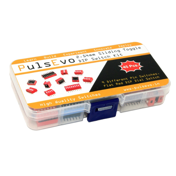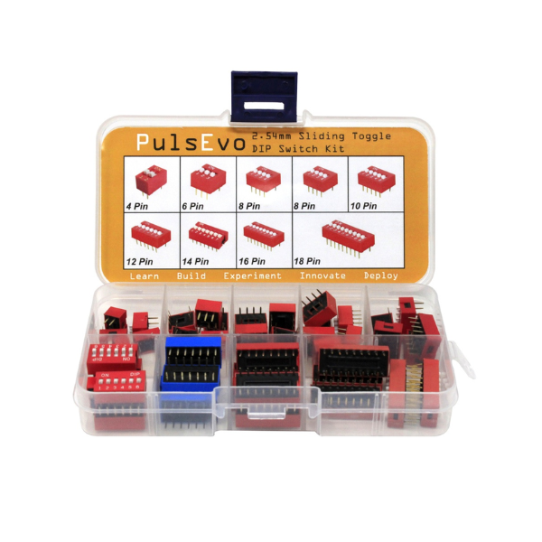 This PulsEvo 2.54mm Sliding Toggle DIP Switch Kit offers a versatile collection of 45 DIP switches with various positions, allowing you to create custom configurations and settings for different applications. These switches are ideal for projects requiring manual configuration or selection of specific options.