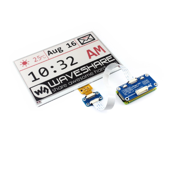 This is an E-Ink display HAT for Raspberry Pi, 7.5-inch, 640×384 resolution, with an embedded controller, communicating via SPI interface. This display shows the data on the screen as same as it was seen on printed paper. There is no backlight so it can keep displaying the last content for a long time even when the power is down. As these displays have no backlight panels and it doesn’t need a continuous power supply to display the (static data with periodic intervals) data on the screen, The Display has a great advantage of ultra-low power consumption. Also, it has a wide viewing angle, great viewing effect under sunlight, Basically, power to the display is only required for refreshing. For connecting with controller boards like Raspberry Pi/Arduino/Nucleo, etc. SPI interface can be used.