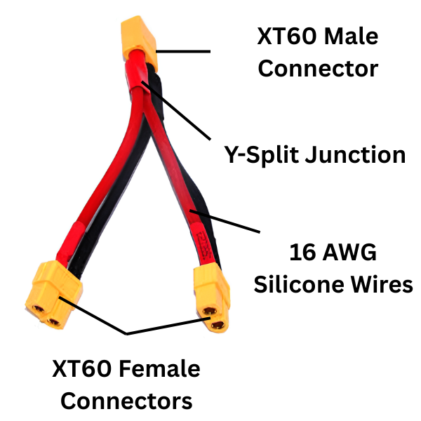 Crafted with durable 16 AWG silicone wire and premium XT60 connectors, this splitter is built to last. The Y-configuration allows you to connect multiple batteries in parallel, increasing capacity and extending flight times. Ideal for RC helicopters, quadcopters, planes, and cars, this splitter delivers reliable power transmission.