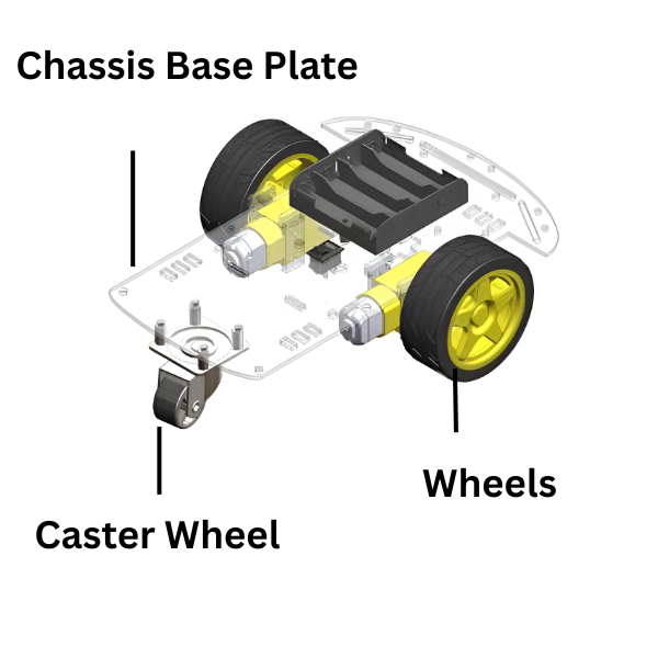 Battery Holder: Comes with a holder for 4 AA batteries, supplying power to the motors and additional electronics.