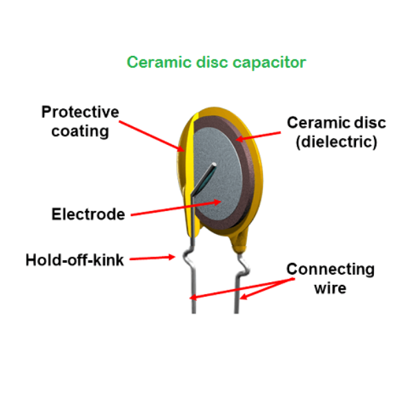 - Temperature Coefficient: Ceramic disc capacitors have a non-linear temperature coefficient, meaning their capacitance can change with temperature.