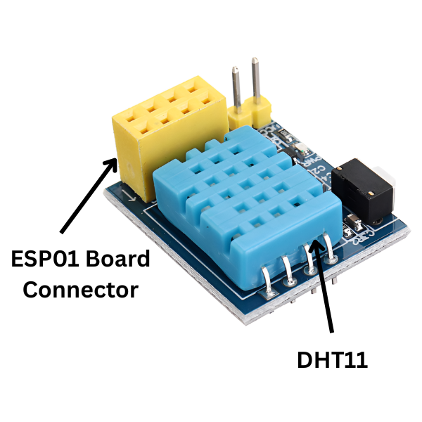 The DHT11 with ESP01 Module is a compact and cost-effective solution for measuring temperature and humidity. It combines the DHT11 sensor, a popular and widely used sensor for measuring temperature and relative humidity, with an ESP01 module, a development board based on the ESP8266 microcontroller. This combination allows for easy integration into various IoT and smart home projects.