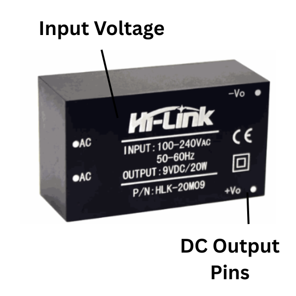 The Hi-Link HLK-20M09 is a compact and efficient switch-mode power supply module designed to convert standard AC input voltage (90V-264V) into a stable 9V DC output.