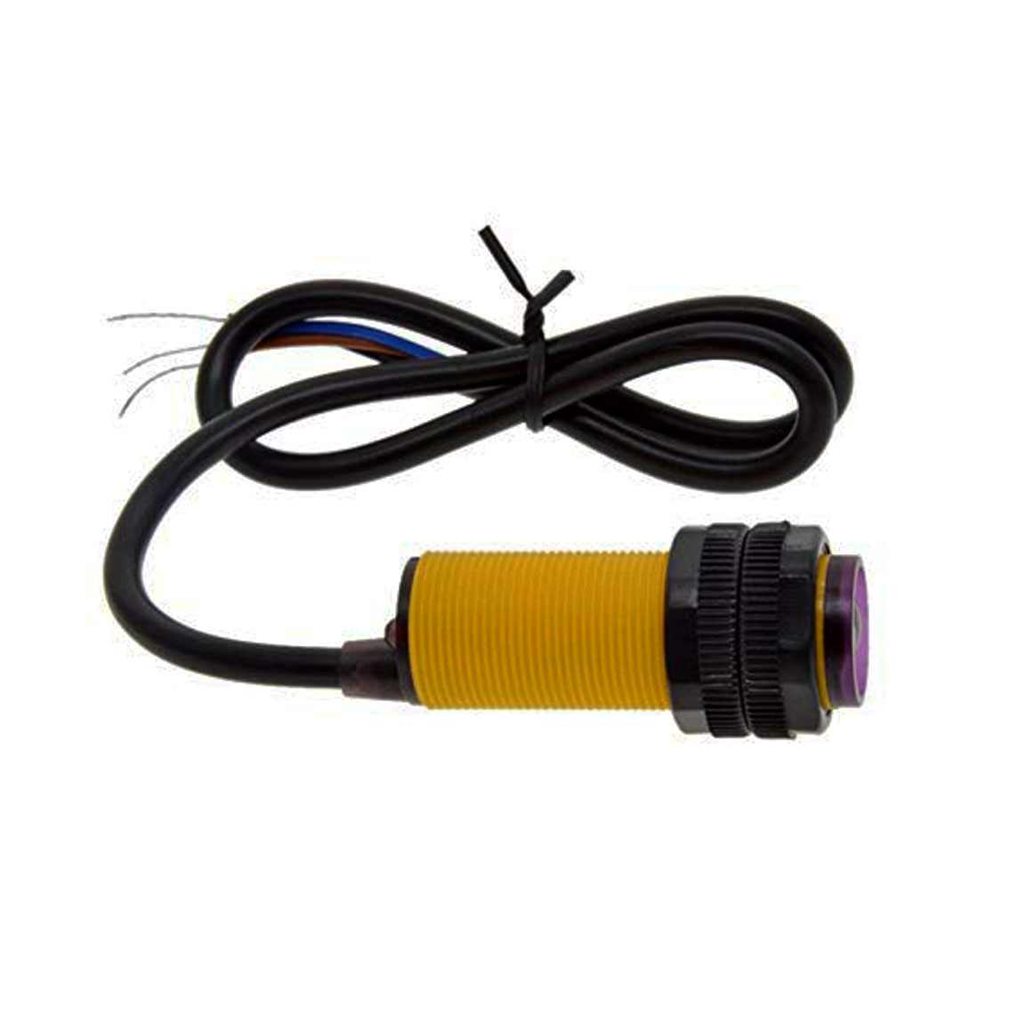 The E18-D80NK is a compact infrared sensor designed to detect objects within its field of view. It emits infrared light and measures the reflected light to determine the presence of objects.