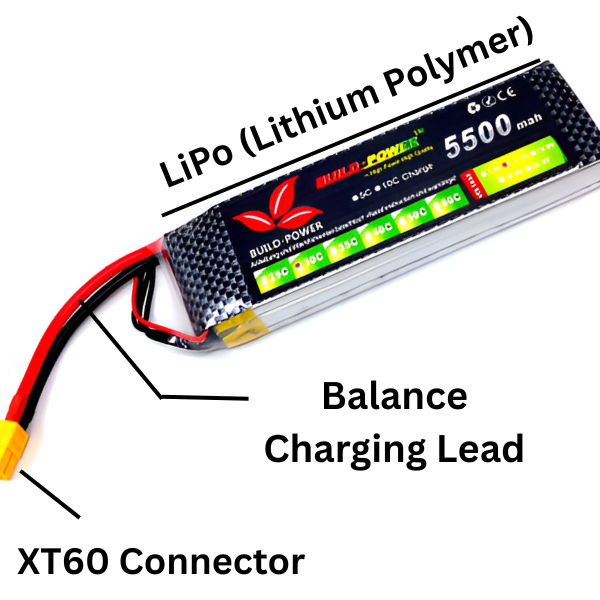 The Li-Po Battery 11.1V 30C 5500mAh Build Power Battery is a high-performance rechargeable battery designed for applications that require high power and fast discharge rates. It is commonly used in RC models, FPV drones, and other devices that demand a lot of energy in a compact package.