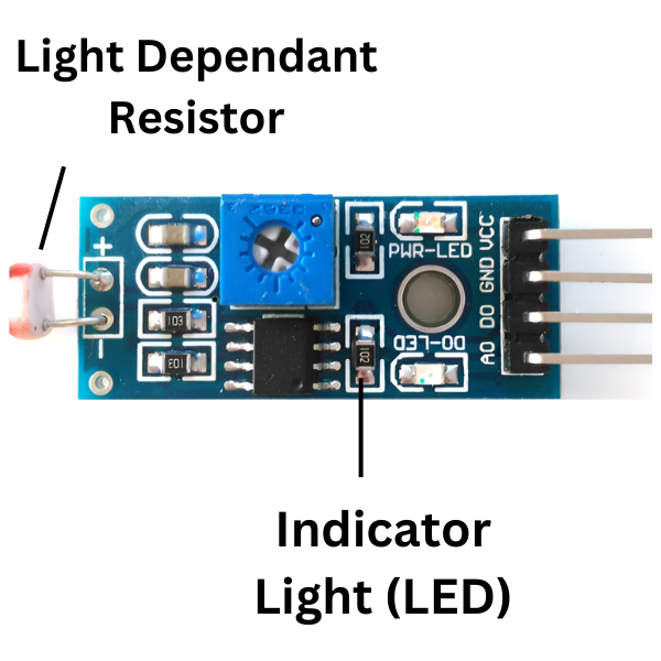 Digital Output (D0): Provides a binary signal indicating whether the light intensity is above or below a set threshold.