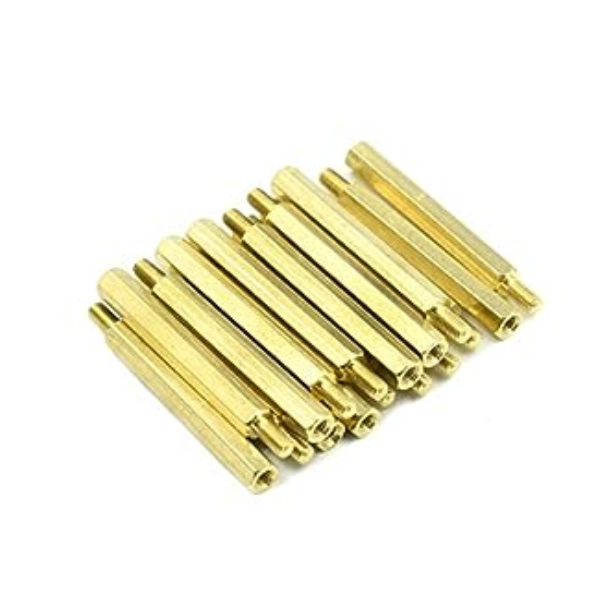 A pack of ten M3x6mm female-female brass standoff spacers, featuring a hexagonal shape and nickel-plated finish. These standoffs are used to elevate PCBs or other components, providing spacing and support for various electronic assemblies.