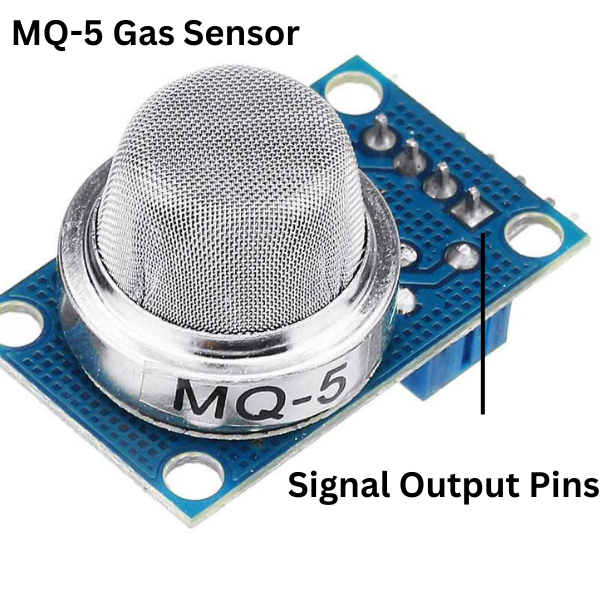 The MQ-5 is a type of gas sensor module designed to detect various combustible gases, including liquefied petroleum gas (LPG), natural gas, and coal gas. It operates on the principle of measuring changes in electrical conductivity when exposed to specific gases.