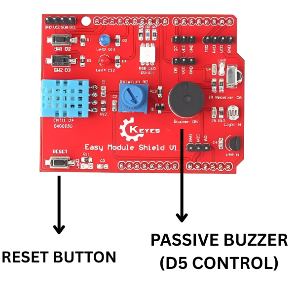 Passive Buzzer: Connected to pin D5, suitable for generating sound in experiments.