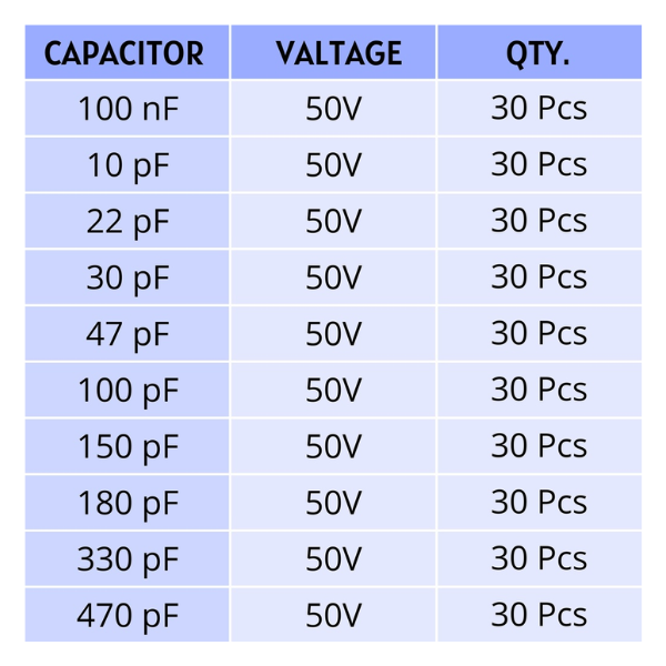 - Abundant Quantity: With 300 capacitors (30 of each value), you'll always have the right component on hand.