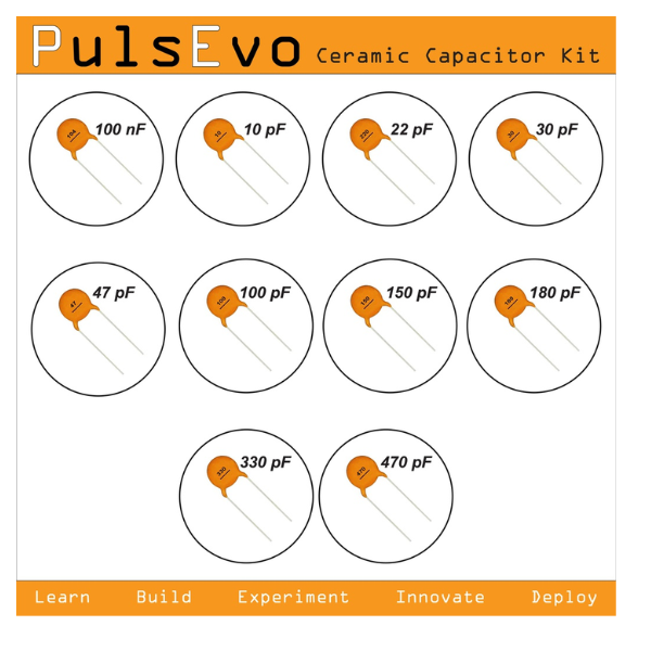 - Wide Range of Capacitances: Includes 10 essential ceramic capacitor values from 100nF to 470pF.
