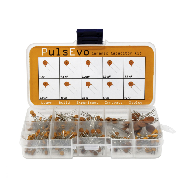 Elevate your electronic projects with the PulsEvo Ceramic Capacitor Assortment Kit. This comprehensive kit contains all the commonly used ceramic capacitor values, ensuring you're always prepared for any circuit design or testing challenge.
