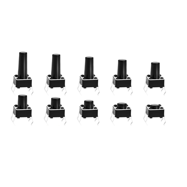 This comprehensive tactile button kit offers a wide range of options for your electronic projects. With 100 buttons in 10 different sizes, you'll have everything you need to create custom interfaces and controls.