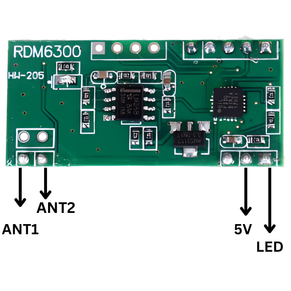 The RDM6300 125KHz EM4100 RFID Card ID Reader Module is a versatile electronic component designed to read and process data from 125KHz EM4100 RFID cards. This module provides a simple and efficient way to implement RFID-based access control, identification, and other applications.