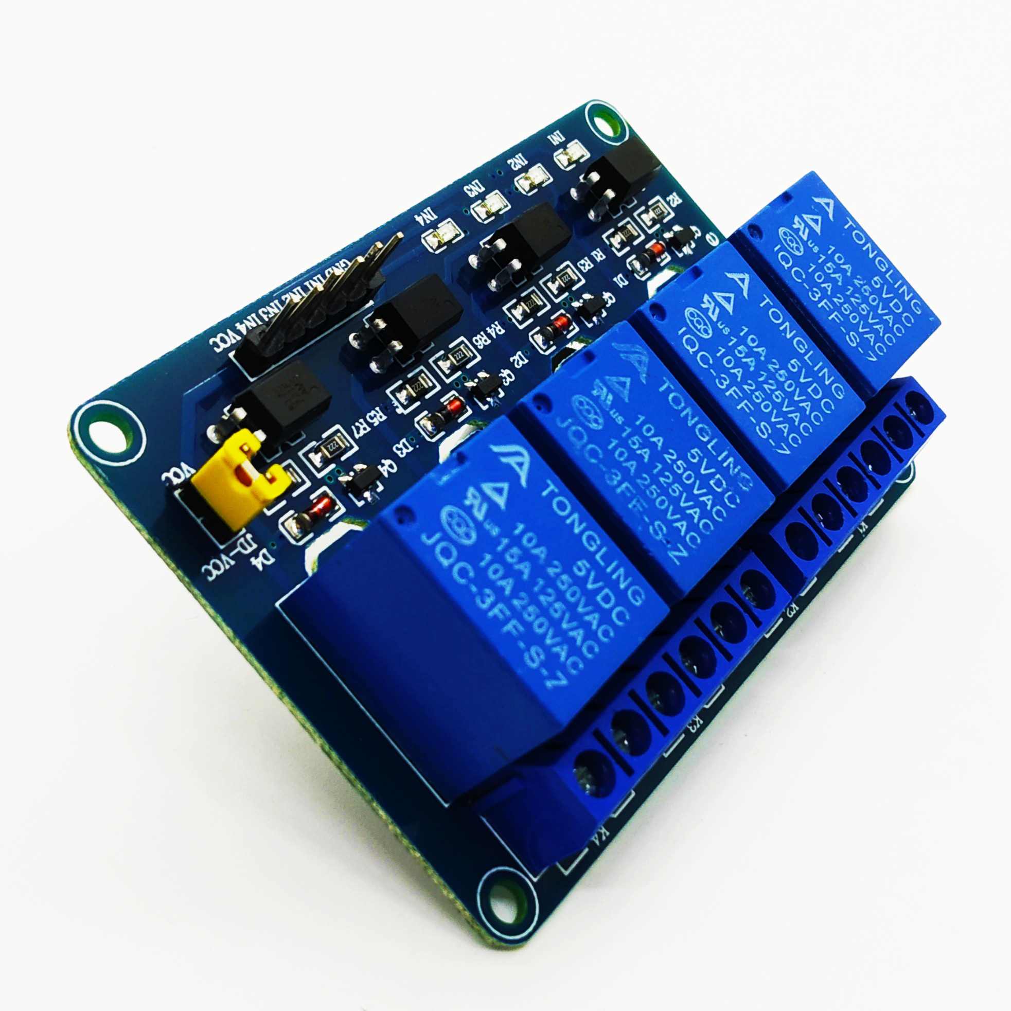 Control Inputs: Four input pins (IN1 to IN4) correspond to each relay, typically requiring a 5V TTL signal with a driver current of 15-20mA.