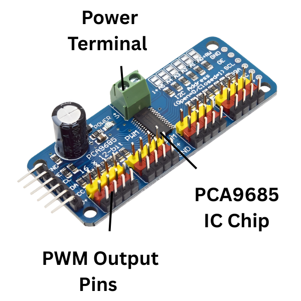 - 16 Independent PWM Channels: Allows simultaneous control of up to 16 devices, such as servos or LEDs.