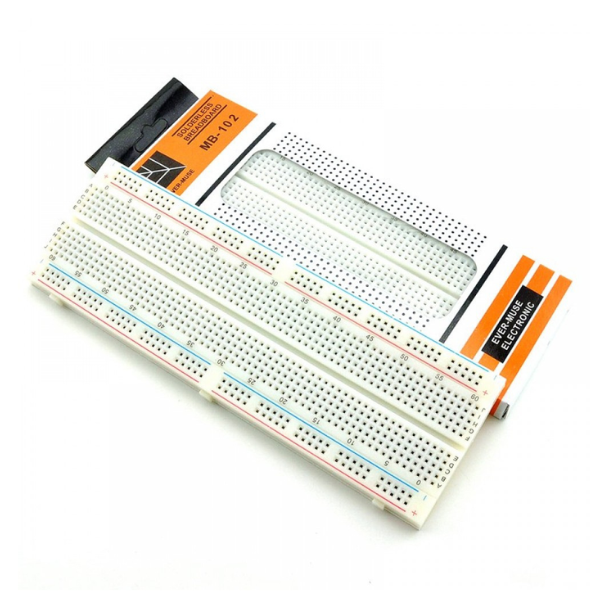 The MB-102 solderless breadboard is a rectangular plastic board with a grid of holes and interconnected metal strips underneath. It provides a convenient and reusable platform for prototyping electronic circuits without the need for soldering. Components are easily inserted and connected using jumper wires, making it ideal for experimentation, learning, and quick circuit building. The "high quality" designation usually implies better materials and construction compared to cheaper breadboards.
