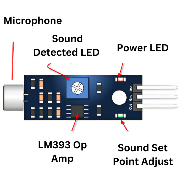 This sound detection sensor module is designed for use in intelligent vehicles and other projects that require the ability to detect sound. It features a high-sensitivity microphone and a built-in amplifier, allowing it to accurately detect sound waves within a specified range.