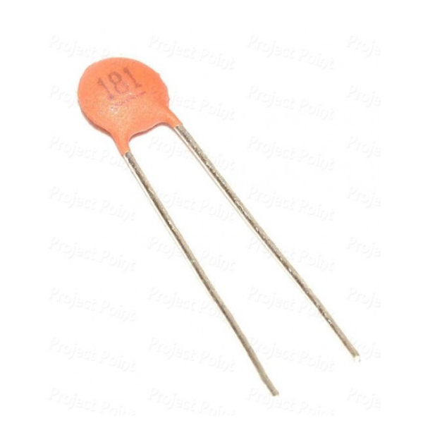 Description: A 180 picofarad ceramic disk capacitor rated for 50 volts. This type of capacitor is commonly used in high-frequency applications due to its low capacitance value.