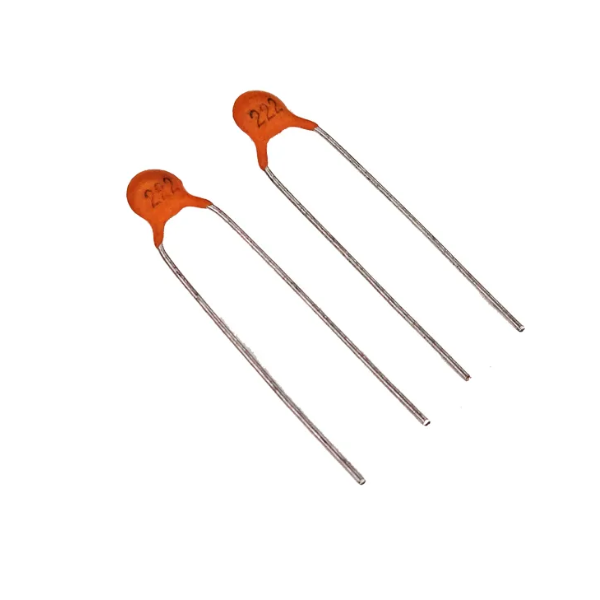 Description: A 2.2 nano-farad ceramic disk capacitor rated for 50 volts. This type of capacitor is commonly used in electronic circuits due to its small size, high capacitance value, and ability to withstand high voltages.