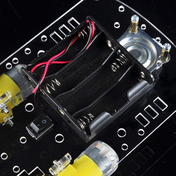 - Battery Holder: Designed to hold four AA batteries, providing adequate power for the motors and additional electronics.