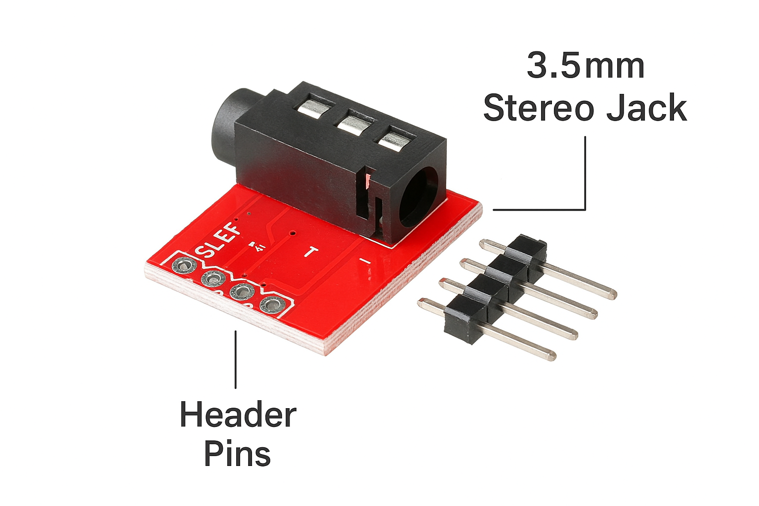 - Clearly Labeled Pins: Each pin on the board is clearly labeled (Left, Right, Ground, Video/Mic), making connections straightforward and preventing errors.