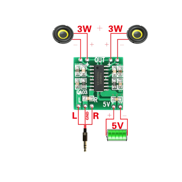 The PAM8403 is a high-performance, miniature audio amplifier module that delivers impressive sound quality from a compact package. It's perfect for a wide range of audio projects, including portable speakers, DIY audio systems, and more. This pack of 2 provides a convenient solution for multiple projects.