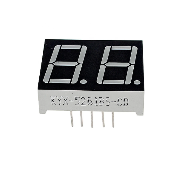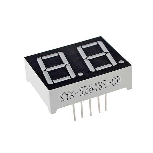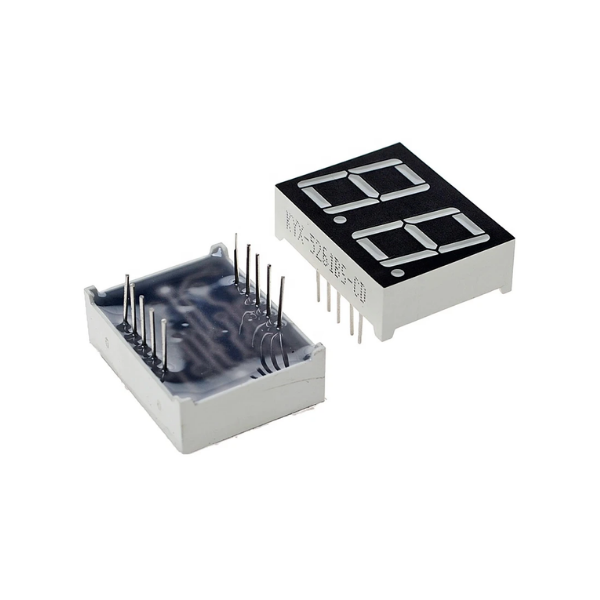 The Red 0.56inch 2 Digit 7 Segment LED Display Digital Tube - Common Cathode (CC) is a versatile electronic component used to display numerical information. It features two 7-segment red LEDs arranged in a row, each displaying digits from 0 to 9. The common cathode configuration simplifies the wiring process.