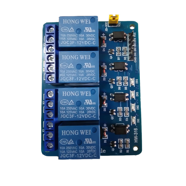 Interface: Usually includes input pins (IN1–IN4), GND, VCC, and JD-VCC for separate relay power