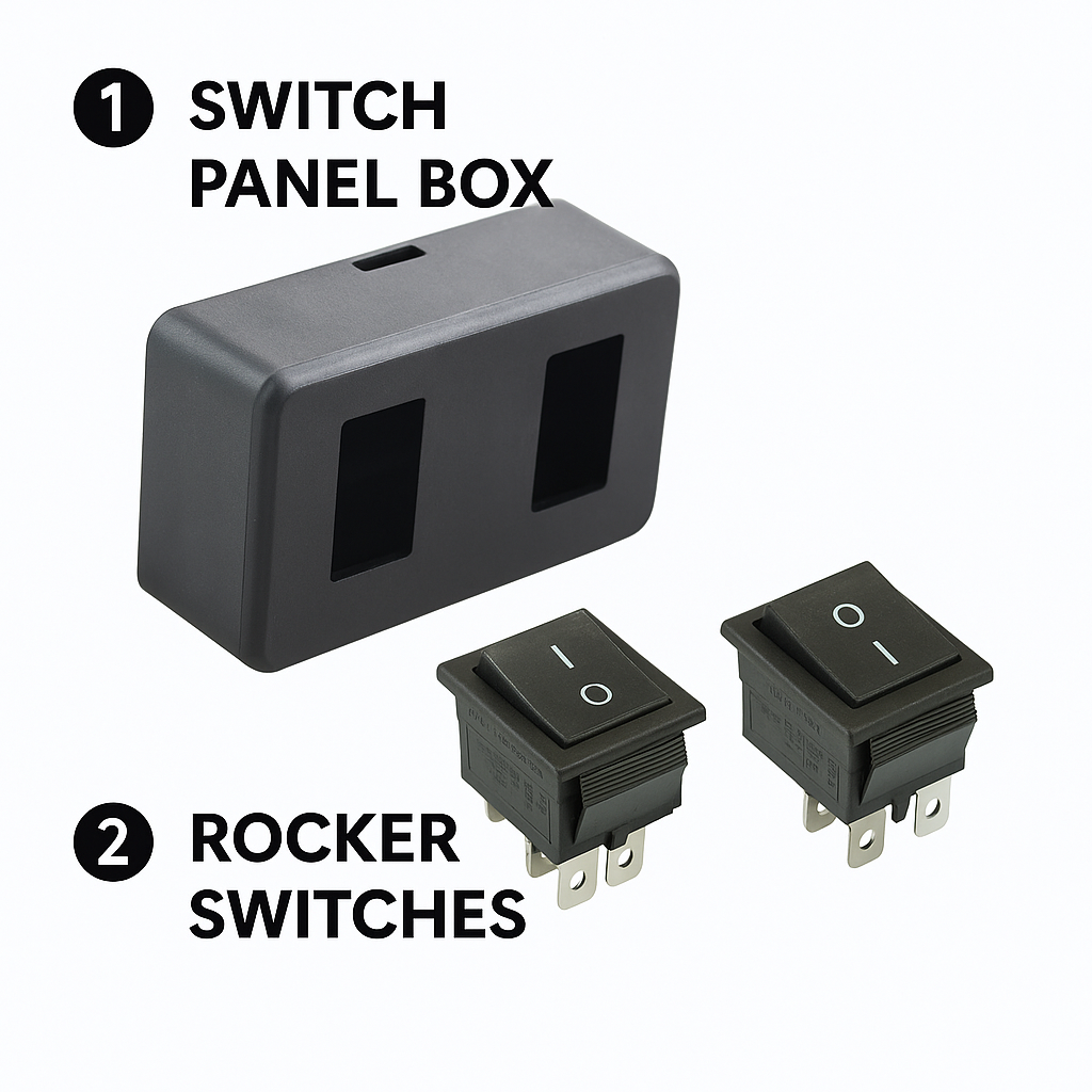 - Switches: Two DPDT rocker switches, each with a 5A current rating.