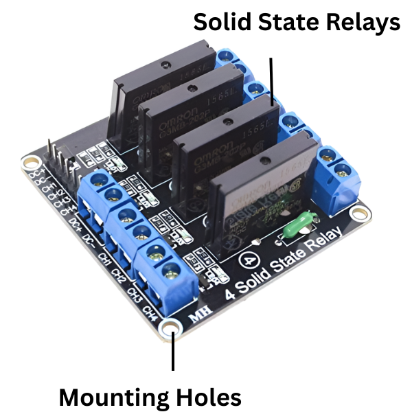 Introducing our 5V 4-channel SSR module, a compact and efficient solution for controlling high-current loads with low-voltage signals. Built around the reliable Omron G3MB SSR, this module offers exceptional performance and durability.