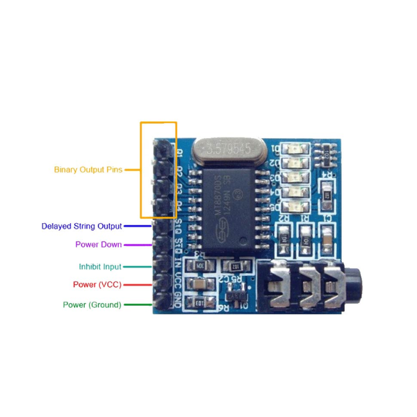 The MT8870 is a versatile DTMF (Dual-Tone Multi-Frequency) decoder module that can decode audio signals containing DTMF tones.It's widely used in various applications that require remote control or data transmission over audio channels.
