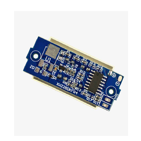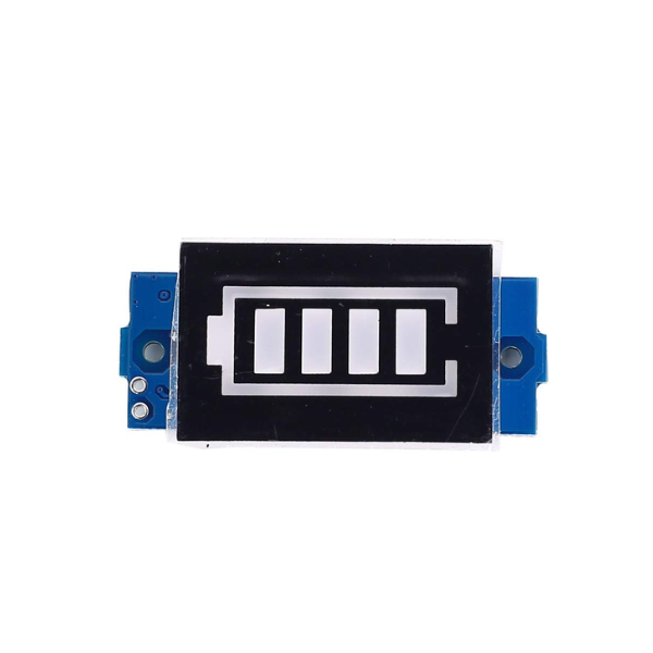 Visual Display: The module features a digital display with a red outline and blue segments, indicating the battery's real-time charge status.