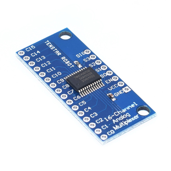 The CD74HC4067 is a high-speed CMOS 16-channel analog/digital multiplexer/demultiplexer. It allows the selection of one of 16 input channels and routes it to a single output. Conversely, it can also route a single input signal to one of 16 output channels.