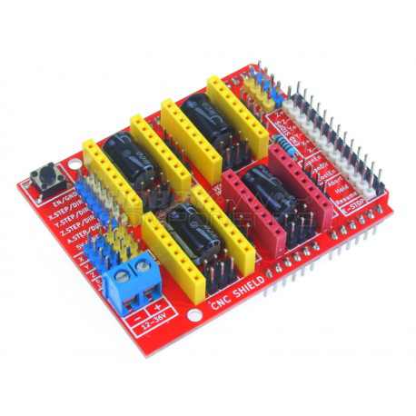 The Arduino CNC Shield makes it easy to get your CNC projects up and running in a few hours. It uses open source firmware on Arduino to control 4 stepper motors using 4 A4988 Stepper drivers,, with this shield and the Arduino you can build all kinds of robotics or CNC projects including CNC routers, laser cutters and even pick & place machines.