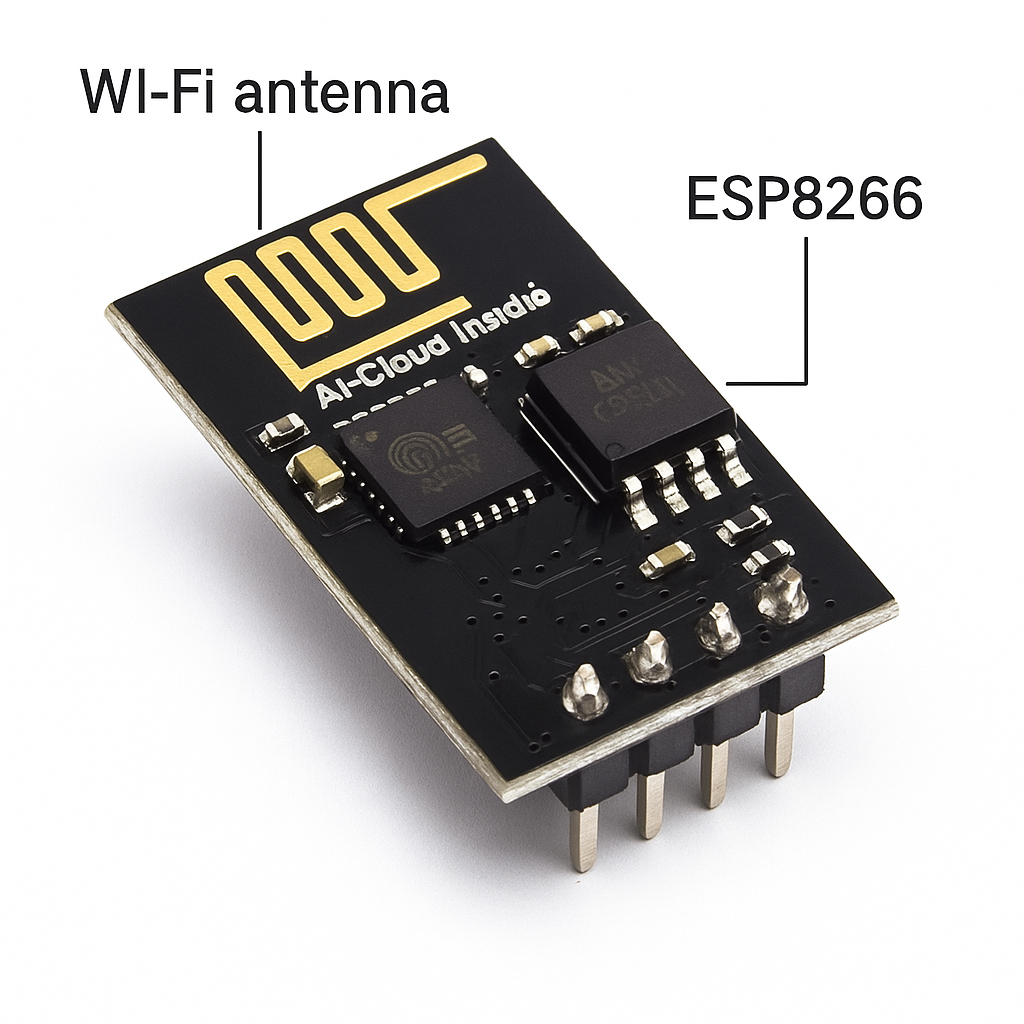 The ESP8266 ESP-01 is a compact and cost-effective Wi-Fi module based on the ESP8266 microcontroller. It provides a simple and efficient way to add Wi-Fi connectivity to various electronic projects, making it a popular choice for IoT and web applications.
