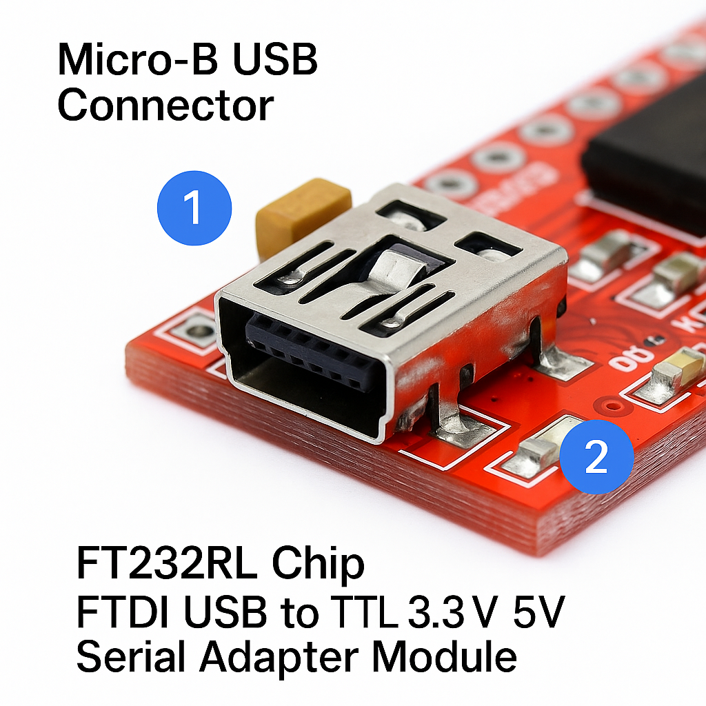 - FT232RL Chip: Uses the high-performance FT232RL chip for reliable and efficient serial communication.