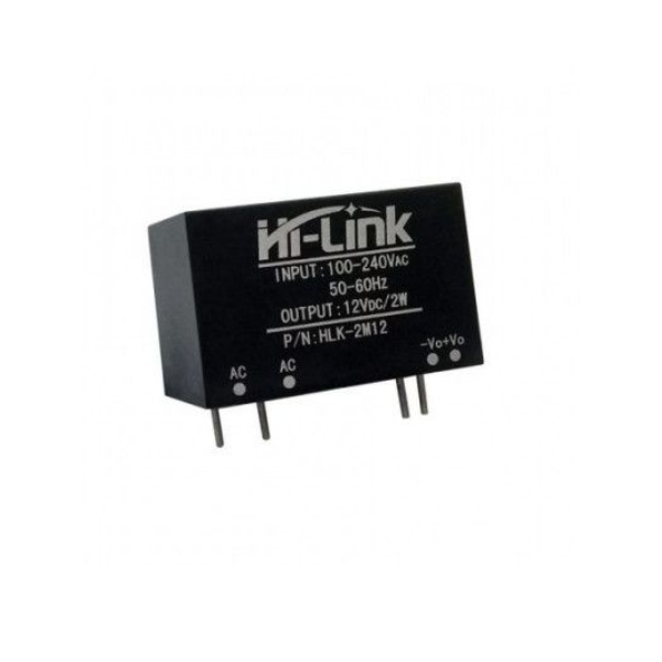 HLK-2M12 12V/2W Switch Power Supply Module is a plastic enclosed PCB mounted isolated switching step-down power supply module. It can supply 12V DC from 100V AC – 240V AC and has a power rating of 2 Watt. This makes it perfect for small projects that need a 12 volt supply from mains. There are many advantages to these modules, such as low-temperature rise, low power, high efficiency, high reliability, high-security isolation, etc.