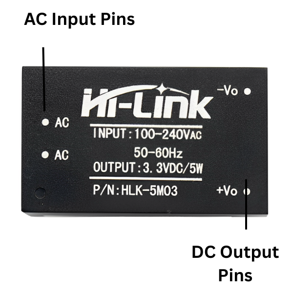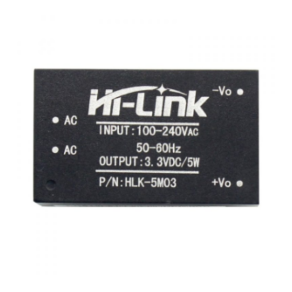 HLK-5M03 3.3V/5W Switch Power Supply Module is a plastic enclosed PCB mounted isolated switching step-down power supply module. It can supply 3.3V DC from 100V AC – 240V AC and has a power rating of 5Watt. This makes it perfect for small projects that need a 3.3 volt supply from mains. This power supply module replaces lots of parts from the traditional power supply like diodes, voltage regulators,s, and transformers.