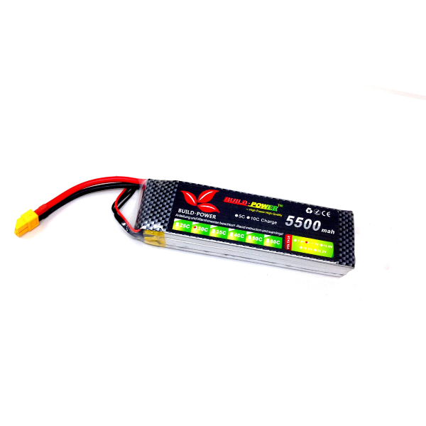 The Li-Po Battery 11.1V 30C 5500mAh Build Power Battery is a high-performance rechargeable battery designed for applications that require high power and fast discharge rates. It is commonly used in RC models, FPV drones, and other devices that demand a lot of energy in a compact package.