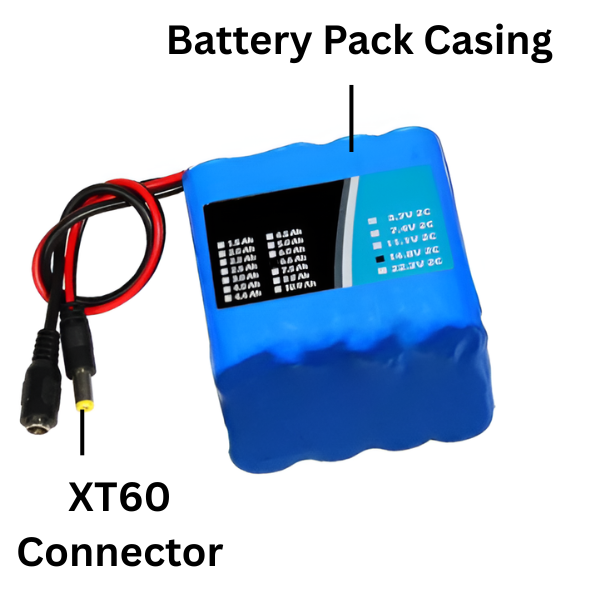 The PulsEvo Power 18650 Li-Ion 6600mAh 14.8V 4S3P Protected Battery Pack is a high-capacity battery pack designed for powering various electronic devices and applications. It features a configuration of four 18650 Li-Ion batteries connected in series (4S) and parallel (3P), providing a nominal voltage of 14.8V and a capacity of 6600mAh.
